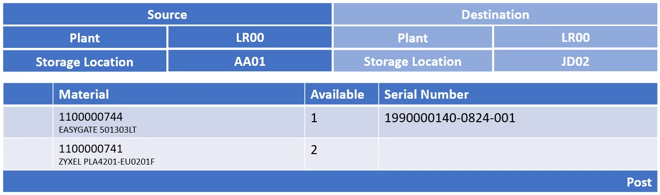 Stock out (material movements) custom app